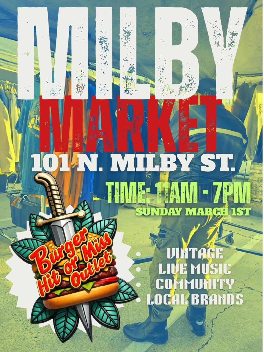 Houston Markets - Burger Hit or Miss Outlet @ Milby Market at 101 N. Milby St.